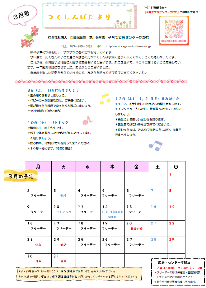 つくしんぼだより 3月号